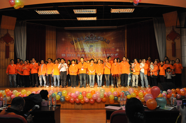 八桂义工2012年度颁奖礼,奖项包括义工新人奖、义主之星奖、特别奉献奖、优秀团队奖等,共有3O名个人和3家单位(企业)获得以上荣誉。“八桂心泉”项目,获得了优秀项目奖。
