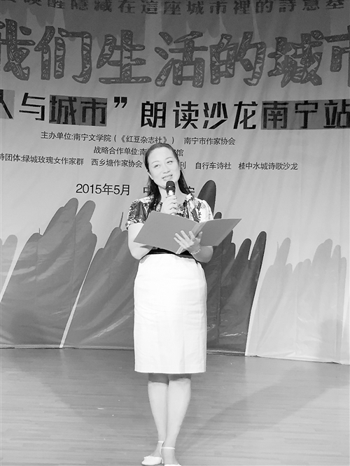 现场,中年、青年、少年3个梯队的诗人、诗歌爱好者在活动中均有精彩表演。诗人、作家们纷纷声情并茂地朗诵自己原创的诗歌作品,表达了自己对南宁这座美丽城市的深厚感情。“绿城玫瑰”作家黄珂是山东人,她与大家分享了自己原创的两首诗《邕城五月风》《莲梦轻语》。黄珂告诉记者,她在南宁生活、工作了20年,“一个人从一座城市走进另一座城市落脚,她却不觉得有任何的生分,那个人就是我。爱情使南宁成为我的第二故乡,而我对南宁的爱便成就了一首首歌颂绿城的诗歌。” 来自广西民族大学、南宁二中的学生文学爱好者分别朗诵了著名诗人欧阳江河、华兹华斯的名作。特别值得一提的是,南宁四中的同学们带来了别开生面、形式活泼的古筝演奏配诗歌朗诵《屈子之歌》。