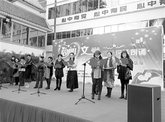据了解,“同心·文学进社区”诗朗诵活动由中共南宁市委统战部、南宁市文联主办,南宁市作家协会、南宁文学院(《红豆》杂志社)、南宁同心书画院、南宁社区文学教育基地、南宁市图书馆与南宁市各城区统战部、社区携手承办。旨在以诗朗诵的主要形式,让诗人、艺术家与社区居民零距离接触。