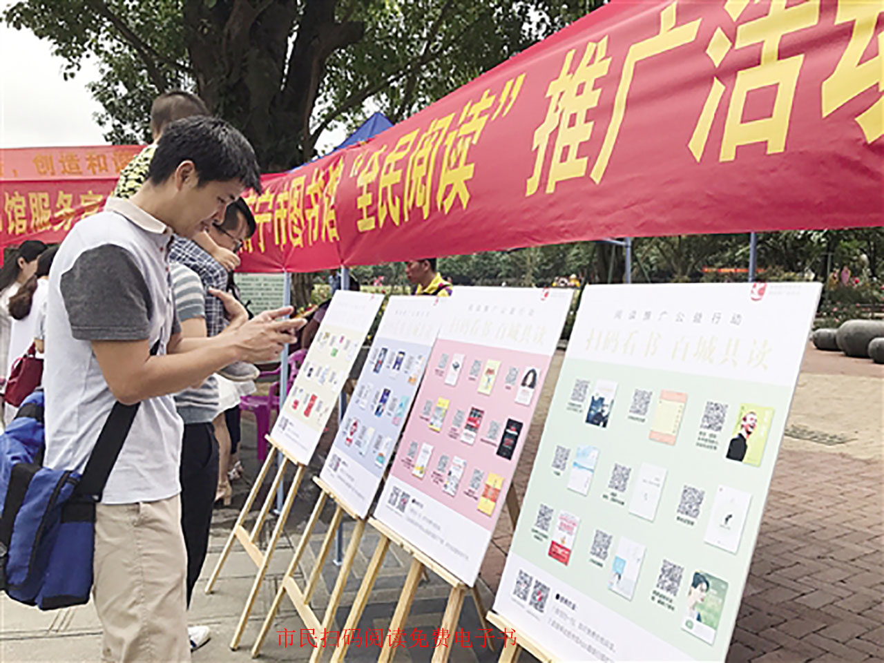 活动主办方随后还举行了数字阅读推广为主要内容的阅读推广公益活动。该公益活动一是“扫码看书,百城共读”。这是中国图书馆学会阅读推广委员会发动全国各城市图书馆共同开展的一项数字阅读推广活动。活动以电子图书和二维码为推广内容和阅读方式,通过宣传海报的形式将包含在线阅览地址二维码的电子图书信息推送给读者,读者利用智能手机或平板电脑等扫一扫,即可在线阅览电子图书全文,或通过移动端APP下载图书全文阅读。二是“哪吒看书——爱上阅读爱上TA”儿童阅读APP的推广,通过轻松有趣的互动环节设计,使孩子们在游戏和故事中提高多方面能力,促进孩子快乐成长。