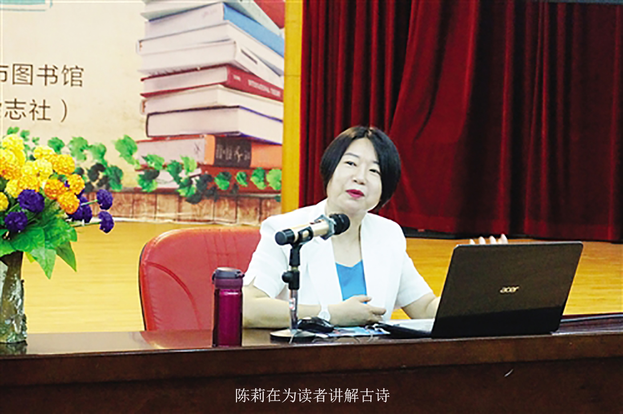 记者注意到,在讲堂上,陈莉经常将一些看似枯燥的古诗用浅显的意思表达出来。比如,在讲解李白《秋风词》中的“长相思兮长相忆,短相思兮无穷极,早知如此绊人心,何如当初莫相识”时,她用了一句“早知道相思这么苦,何必当初认识你呢”,瞬间让现场读者明了诗句的意思。