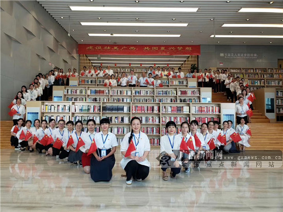 9月28日,由北部湾经济区图书馆服务联盟、南宁市图书馆、南宁市少年儿童图书馆、兴宁区图书馆、江南区图书馆、青秀区图书馆、西乡塘区图书馆、邕宁区图书馆、良庆区图书馆、武鸣区图书馆联合主办庆祝新中国成立70周年——我和我的祖国·传承红色基因·诵读经典华章大型广场阅读活动在南宁图书馆举行,近500名市民读者热情参与。