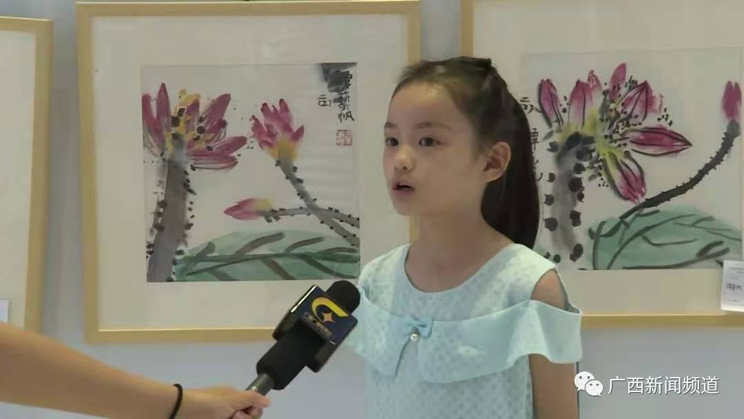 环江毛南族自治县下南中心小学二年级学生 谭艺帆:这是我在我们学校画的荷花,我觉得我们学校很美,我的家乡也很美,希望大家都能来我的家乡。
