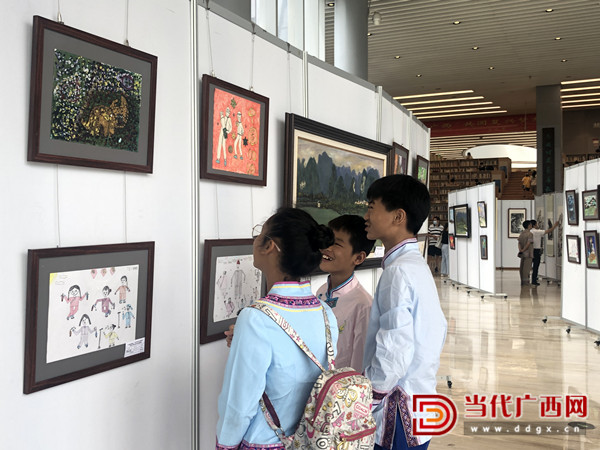 8月5日,以“大美毛南 你我同行”为主题的粤桂教育扶贫毛南山乡师生美术作品专题巡回展览在南宁市图书馆举行,全面展示粤桂扶贫教育帮扶机制之下,河池市环江毛南族自治县取得的教育扶贫硕果。