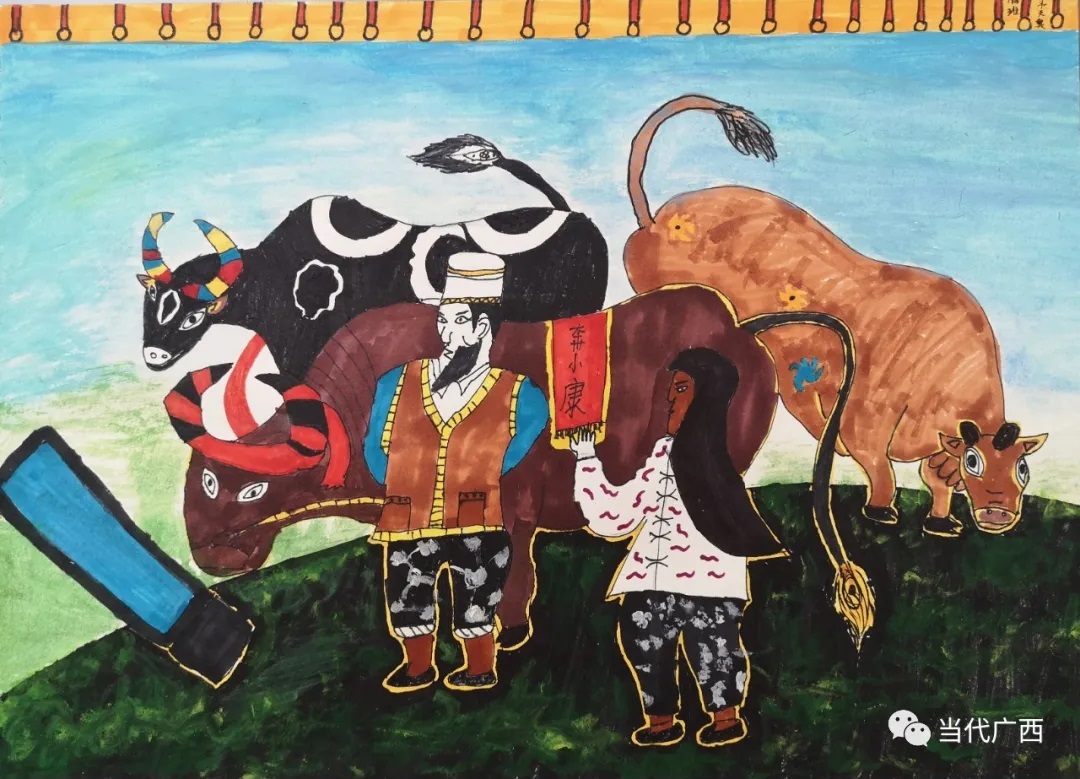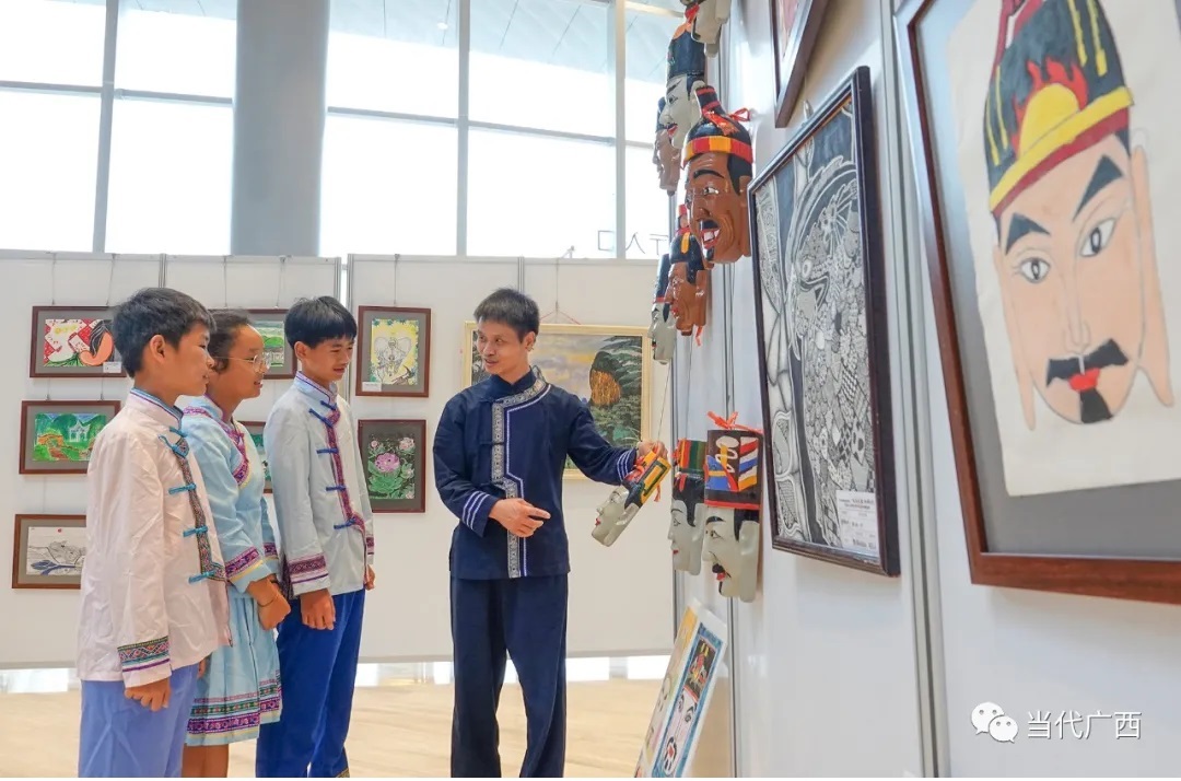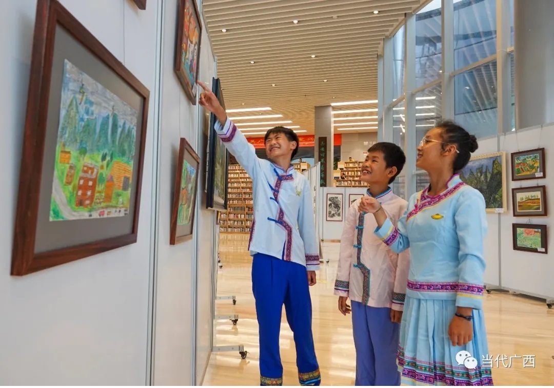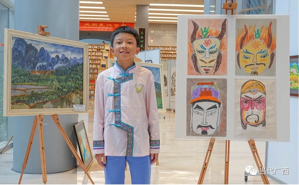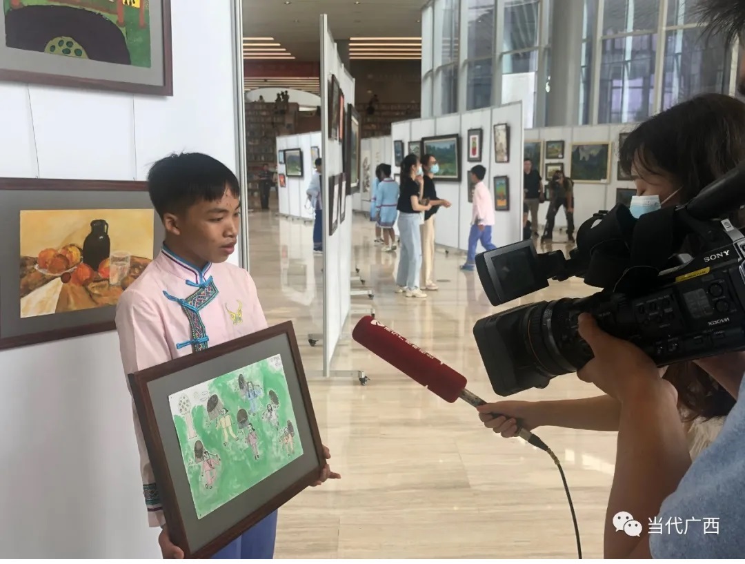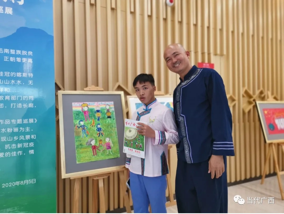 8月5日,谢清良等支教老师带着谭国强和其他学生来到了南宁市图书馆,举办“大美毛南 你我同行”粤桂教育扶贫毛南山乡师生美术作品专题巡展,展示粤桂教育扶贫协作硕果。