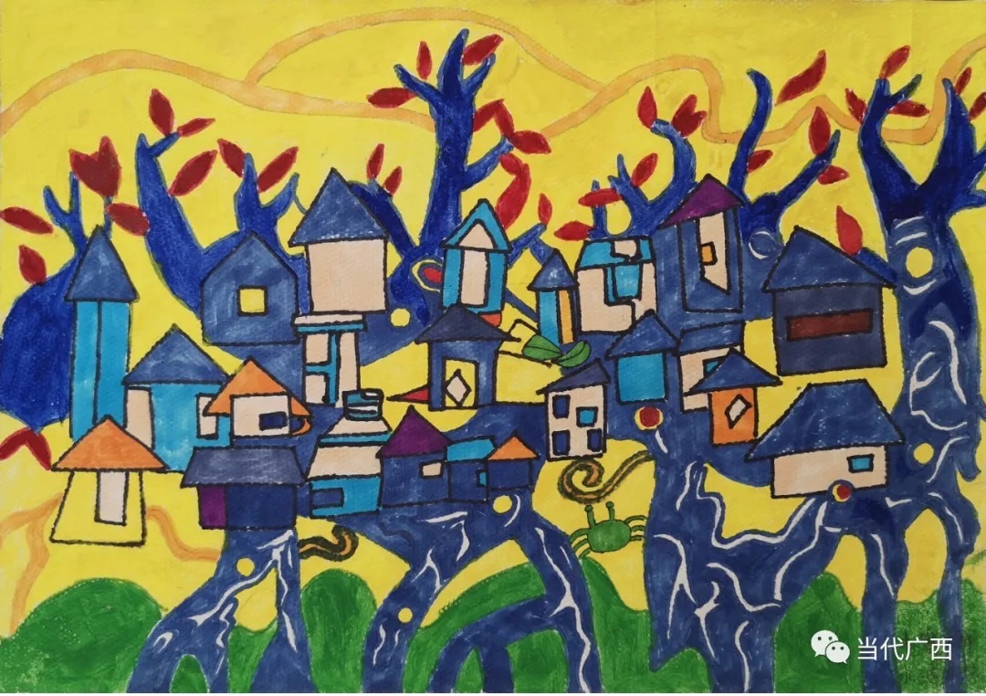 孩子们笔绘眼中的家乡。记者 谢羲薇 摄