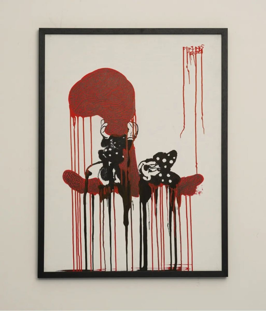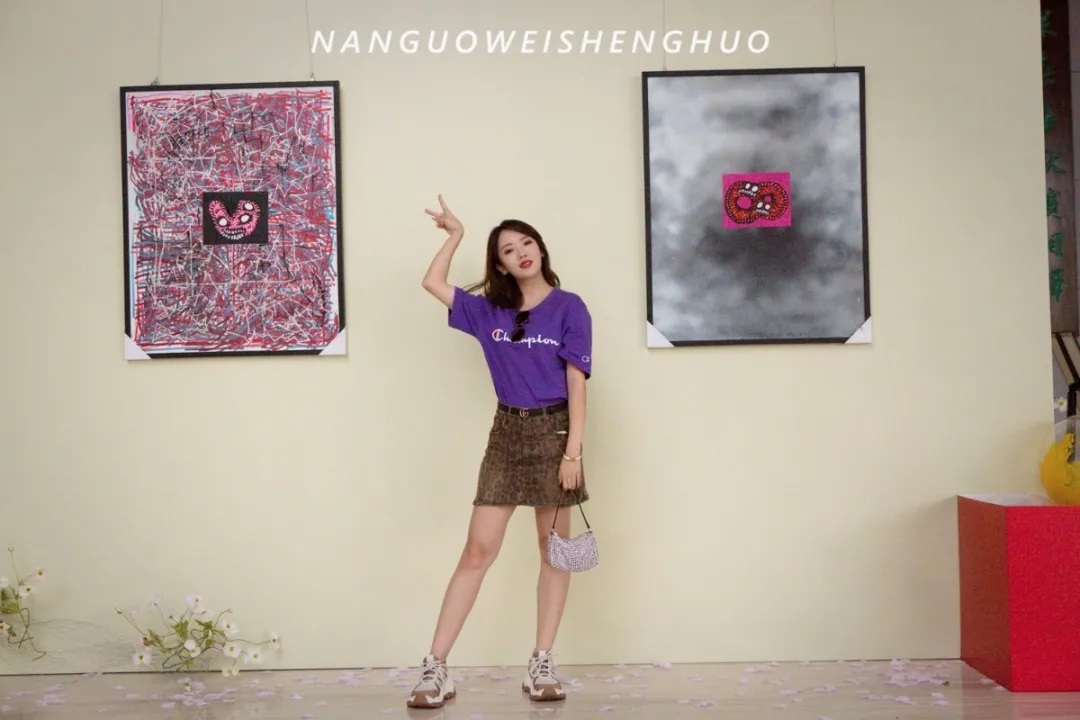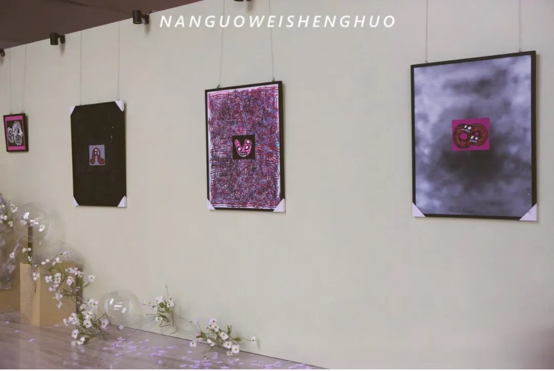 现场展出的有南宁00后鬼才画家PLAZAES的作品。他自成一派的绘画体系从不被现实的规矩框架。