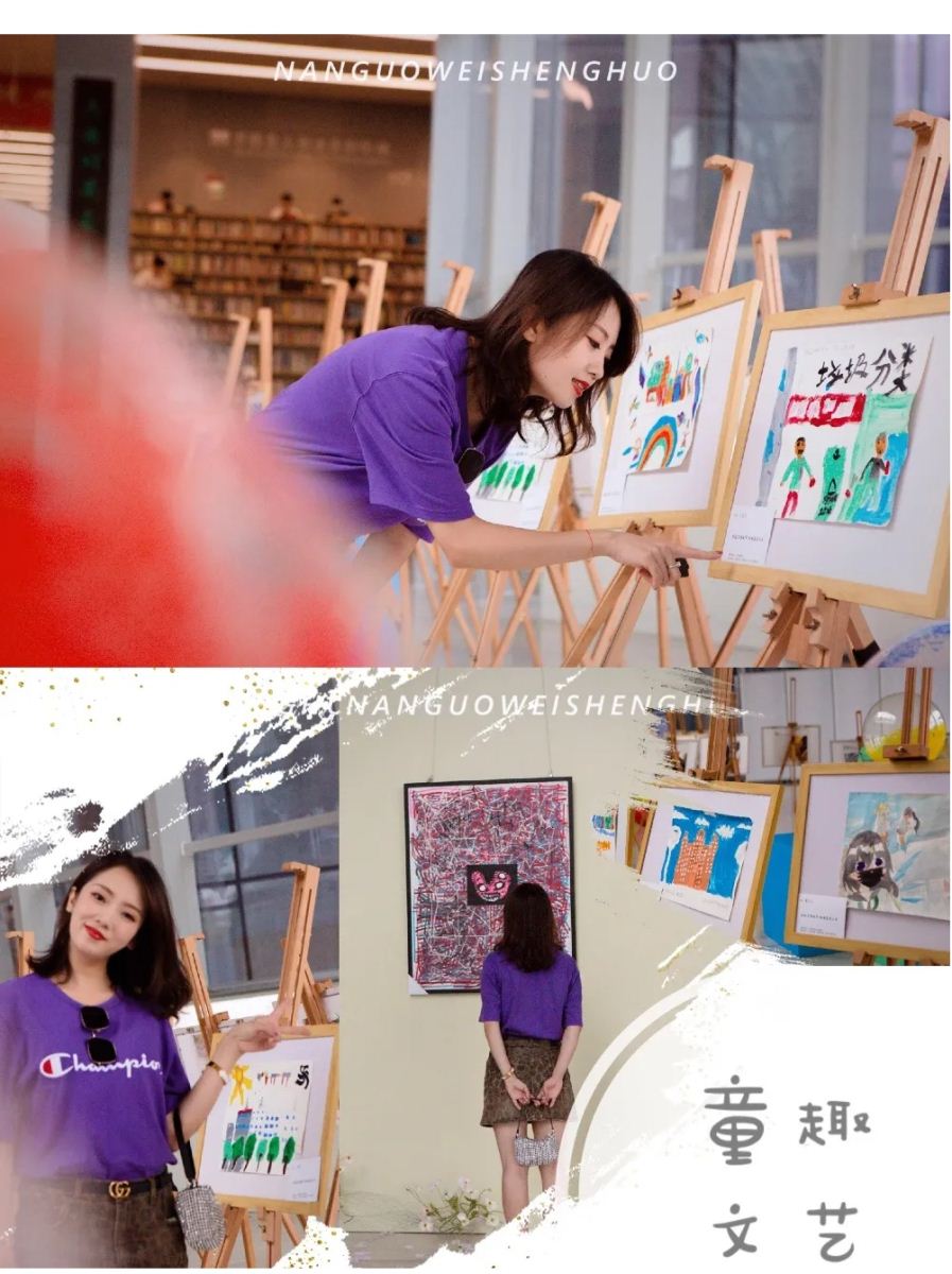 每一幅作品都泛着创意之光,青年画家和萌娃们画笔肆意绘出的最好时光已在这里,文艺、童趣,来一趟怎能不打卡留影。