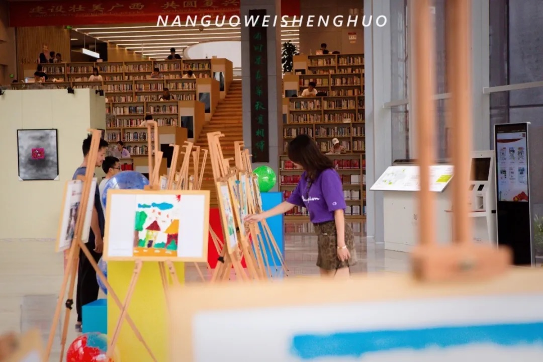 活动当日,中国美术家协会会员、中央文史研究馆书画院研究员王庆军,南宁市图书馆学会监事,中国图书馆学会会员黄珂,00后鬼才画家PLAZAES等南宁文化界大咖,纷纷到场助阵,给孩子们看到了榜样的力量。此次活动评选出了最美的五象湖童画,获奖作品目前就在南宁市图书馆中展出。