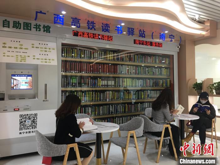 读者南宁高铁读书驿站阅读。 陈秋霞 摄