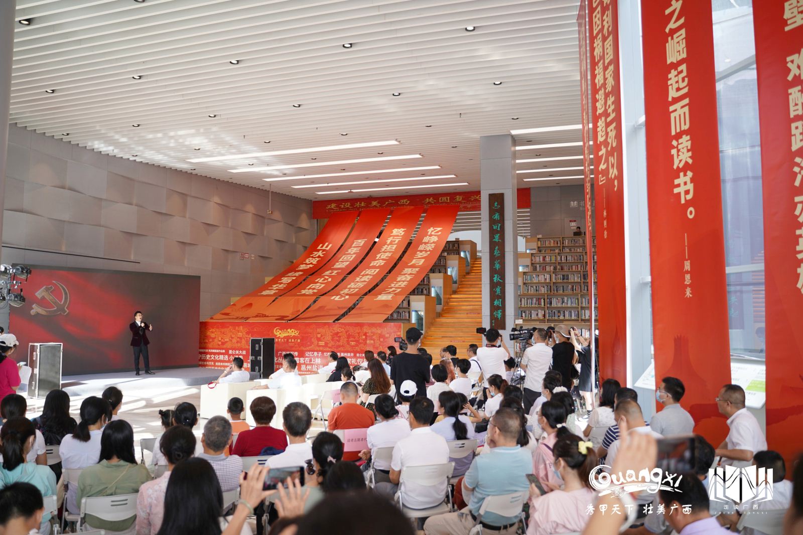 6月18日,“党旗高高飘扬——广西人游广西·走读南国抗战之旅”活动在南宁市图书馆启动,标志着“党旗高高飘扬·走读广西”庆祝中国共产党成立100周年系列活动在首府南宁再次出发。