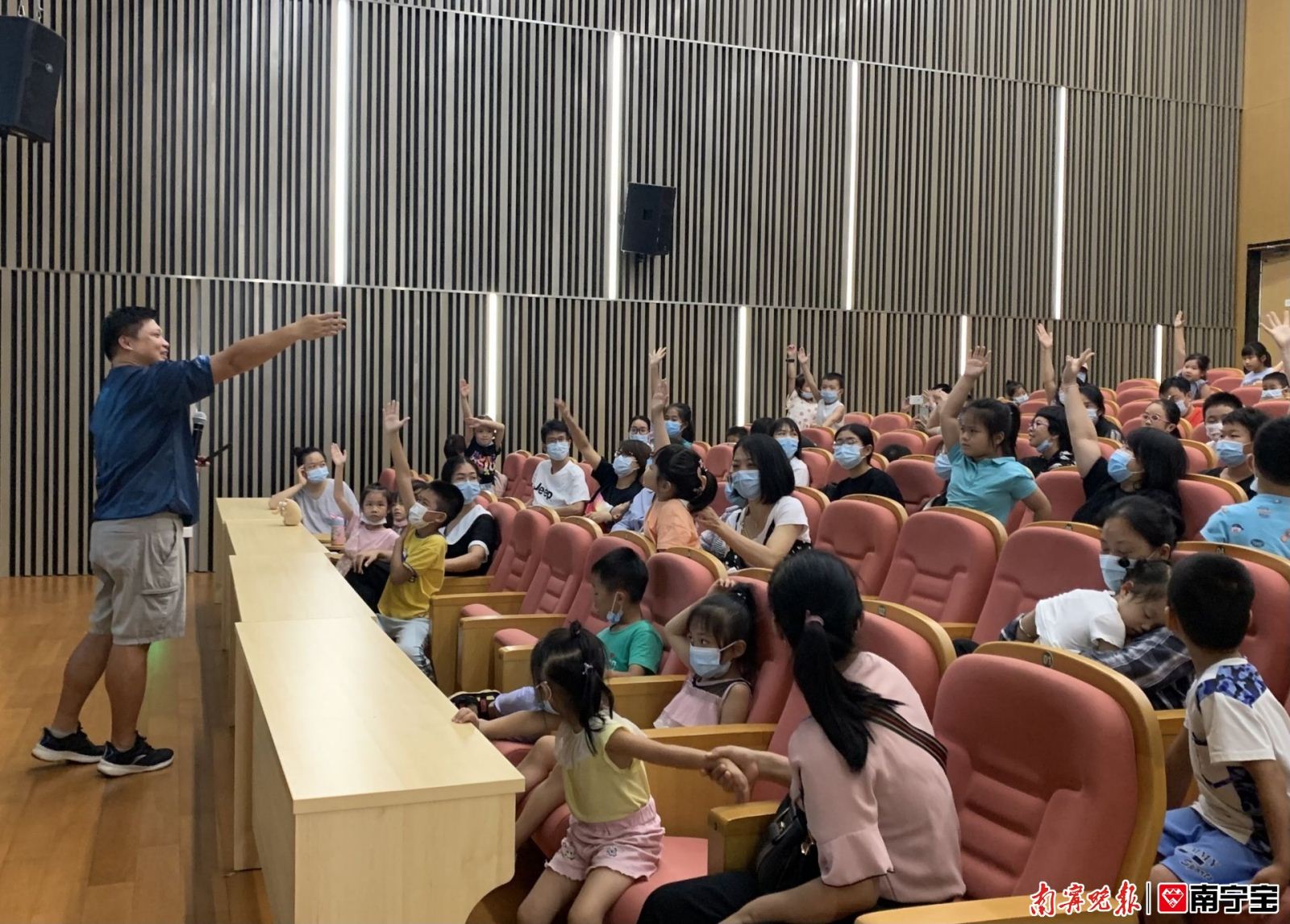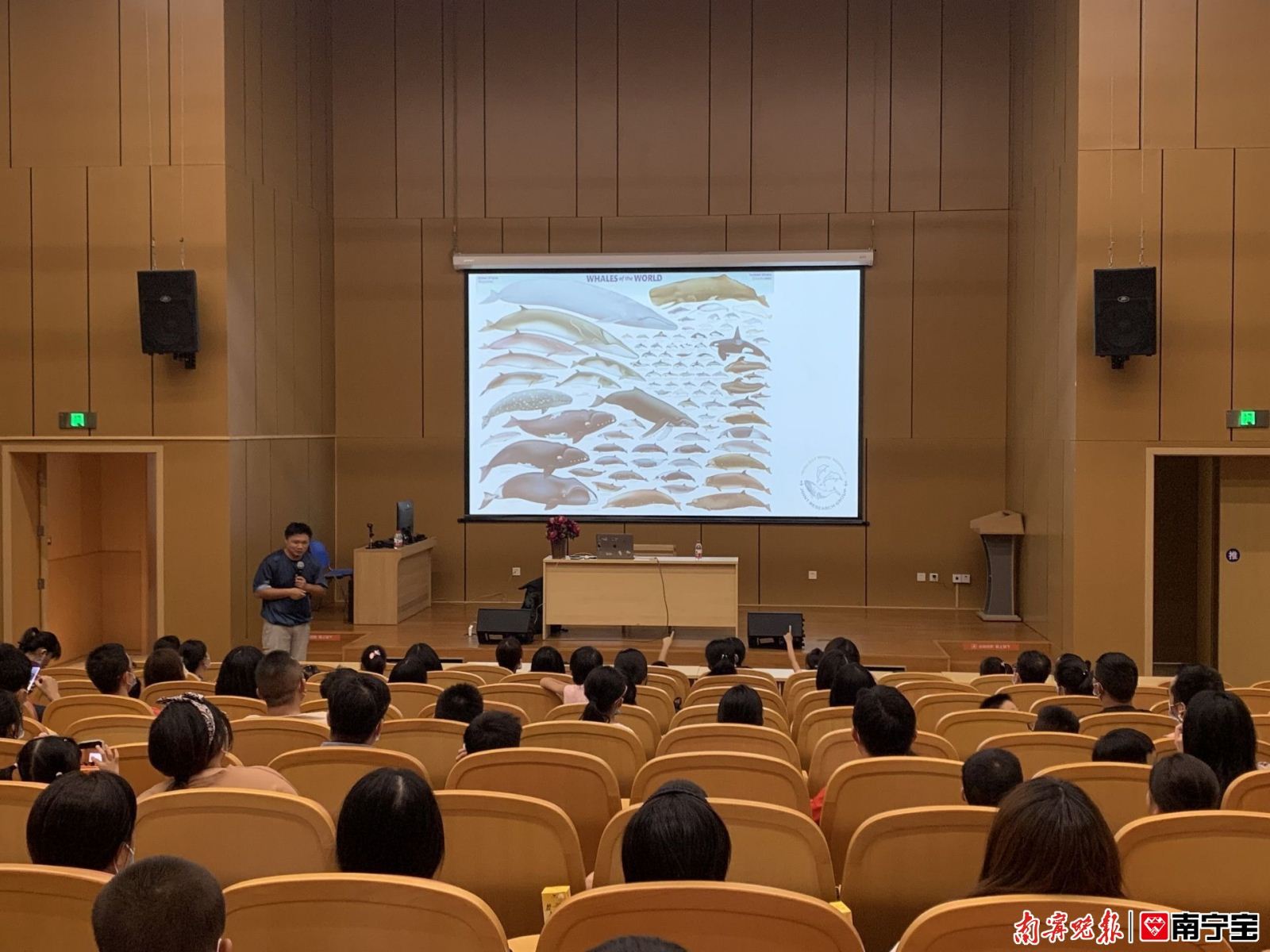 “海豚是鲸鱼吗?”“鲸鱼都生活在海里的吗?”“我们为什么要保护环境?”7月25日下午,“保护海洋家园”科普阅读专题讲座如期而至,在正式开讲前,主讲嘉宾、广西著名科普专家陈默先抛出三个待解的问题,一下子便吸引了大读者和小读者的注意力,让他们更对鲸鱼的世界充满了好奇。
