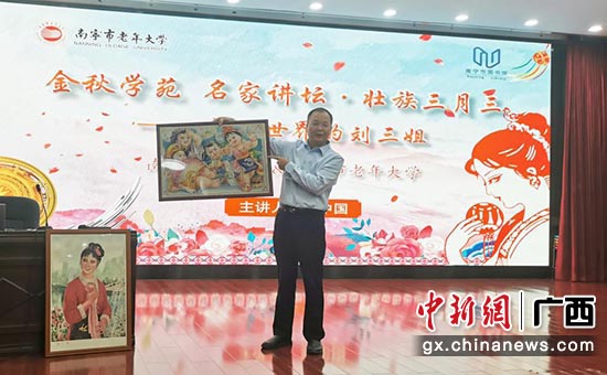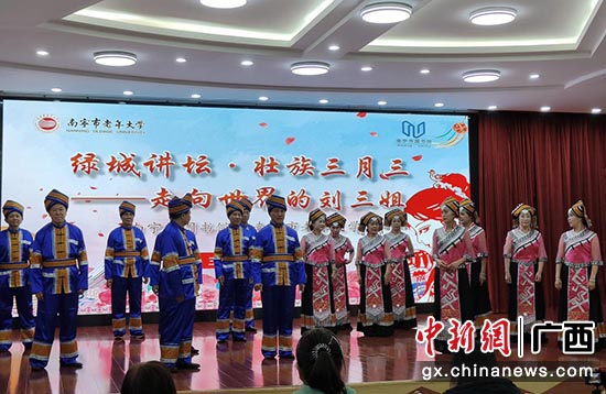 中新网广西新闻4月3日电(记者 林艳华)3月28日上午,为让更多民众了解刘三姐的故事,充分展示源于广西的中华优秀传统文化,弘扬好新时代刘三姐文化精神,同时提高市民读者的文化素质和文化自信,南宁市图书馆、南宁市老干部活动中心(市老年大学、市委老干部党校)联合在南宁开展“绿城讲坛·壮族三月三一一走向世界的刘三姐”主题活动,共同讲好中华民族共同体意识宣传教育的“广西故事”,构建广西各民族文化融合发展的中华民族共有精神家园,推动各民族文化的传承保护和创新交融。