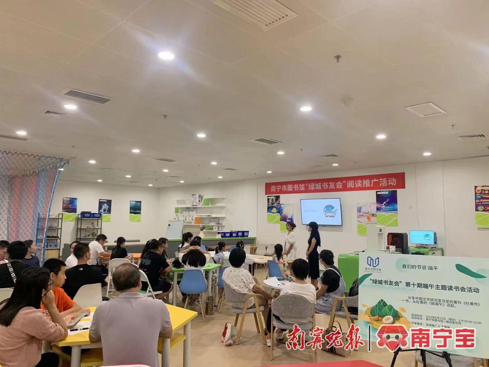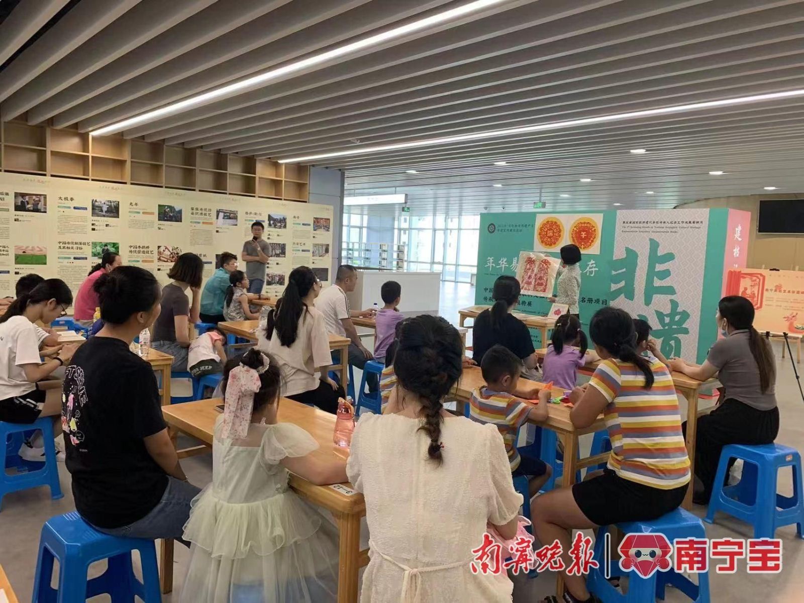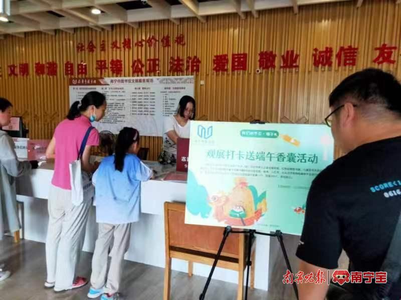 南宁市图书馆在端午节为读者策划了线上线下多种形式的“我们的节日·端午”主题文化活动。经典展览品牌“绿城展廊”在端午期间推出四场展览:线下展览在展的是由国家图书馆牵头主办的“年华易老 技·忆永存”——非物质文化遗产名录(册)项目传承人记录成果特展。线上展览在微信公众号分三天推出:端午节民俗文化展、端午节香囊文化展以及浓情端午赏名家诗文展。读者在手机上点击展览推文即可观看带有语音解说的端午文化展览。