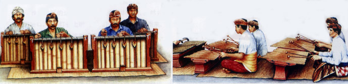 一谈到印尼音乐,人们往往会想到《宝贝》、《星星索》、《梭罗河》、《莎里楠蒂》等歌曲,它们以优美的旋律、徐缓的节奏和独特的风味,将人们带进了梦幻般美丽的南洋风光中。但是印尼音乐中历史最悠久,最有特点,并在世界上影响最大的却是甘美兰。甘美兰是印尼人民喜闻乐见的一种民族乐队,它所演奏的音乐也称为甘美兰。甘美兰乐队及其音乐大约在15世纪时形成,至今已有500年的历史,它深深植根于印尼的泥土中,在民间有着深厚的基础。在上个世纪20年代,仅爪哇岛上就有二万个甘美兰乐队。