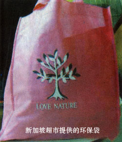 新加坡,从2007年4月开始举办“自备购物袋日”活动。为鼓励消费者少用塑料袋,新加坡将每个月的第一个星期三设为“自备购物袋日”,在那一天,新加坡206家超市都不再免费提供塑料购物袋,而是鼓励消费者自备购物袋。若消费者没有自备购物袋,则需花一新元购买可再循环使用的环保袋,或为索取的每个塑料袋捐一角钱。为响应政府减少垃圾量的号召,新加坡十多家主要的食品和饮料厂商签署“ 自愿包装协议”,承诺减少产品包装所需的材料。依据协议,厂商将逐步减少产品包装所需的材料。协议首先从食品和饮料包装着手,日后考虑把范围扩大至其他类型的产品,例如清洁剂及电器等。