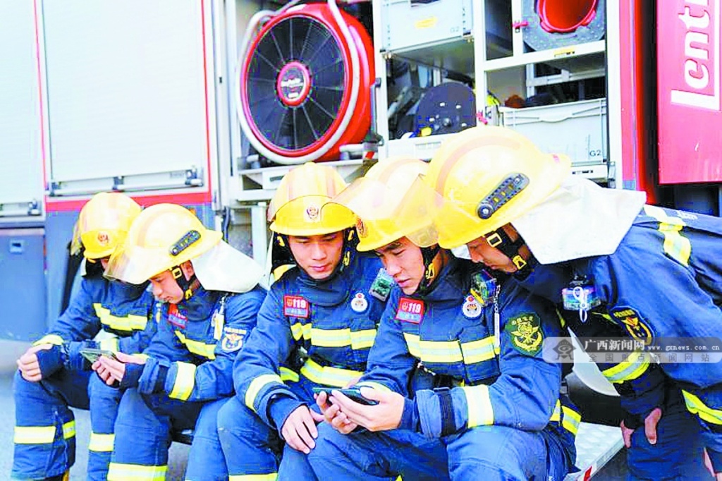 10月16日,正在备勤的南宁市消防救援支队消防员正在收看党的二十大开幕会。广西日报-广西云客户端记者 梁凯昌 通讯员 崔小龙 摄