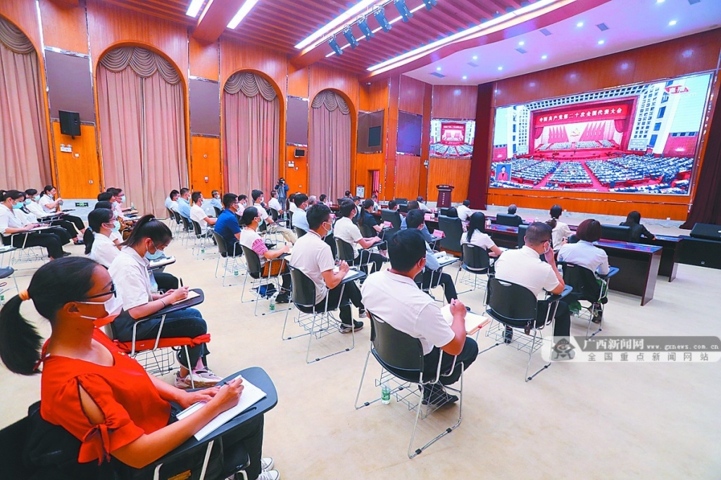 欣逢盛会,共襄盛举。广西壮族自治区各地党员干部群众以各种方式,认真收听收看党的二十大开幕盛况,共同见证这一继往开来的伟大时刻。