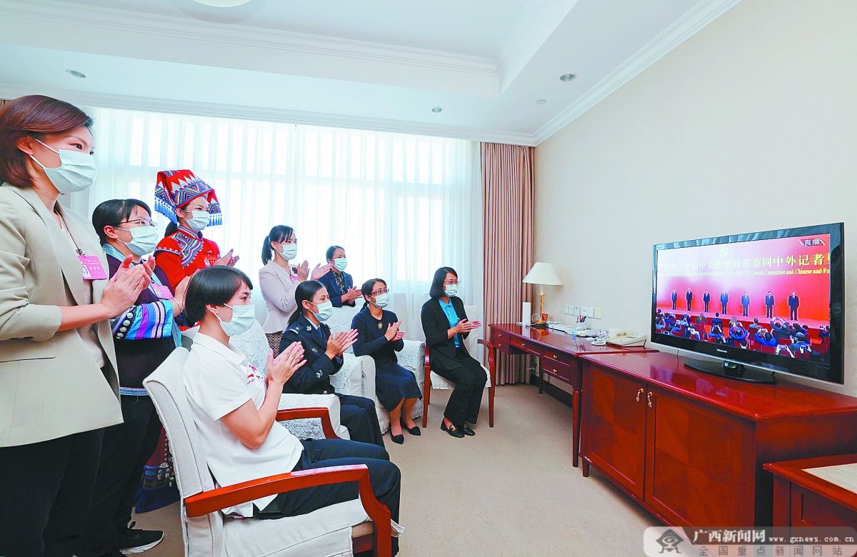 当天,出席党的二十大的广西代表团代表收看了新一届中共中央政治局常委与中外记者见面会,认真聆听习近平总书记发表的重要讲话,心情无比喜悦、振奋、自豪。大家一致表示坚决拥护新一届中央领导集体,深刻领悟“两个确立”的决定性意义,坚决做到“两个维护”,紧密团结在以习近平同志为核心的党中央周围,全面贯彻习近平新时代中国特色社会主义思想,紧跟伟大复兴领航人踔厉笃行,弘扬伟大建党精神,牢记空谈误国、实干兴邦,坚定信心、同心同德,埋头苦干、奋勇前进,为全面建设社会主义现代化国家、全面推进中华民族伟大复兴而团结奋斗,在新的赶考之路上向历史和人民交出新的优异答卷。