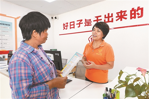 在震东社区就业服务站,站长梁佳向群众推荐就业岗位。 陈建倬/摄