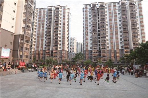 震东社区组织搬迁群众到广场上进行广场舞表演。 何宏生/摄