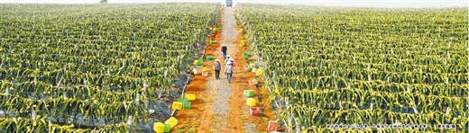 连片种植的红心火龙果,已经成为当地村民的“致富果”。 黄永福/摄