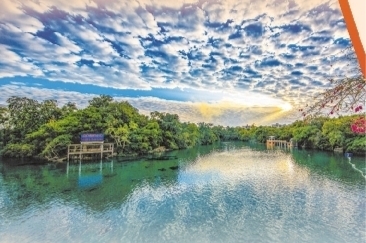 沐浴在晨光中的武鸣定罗湖休闲公园。 梁 挺/摄