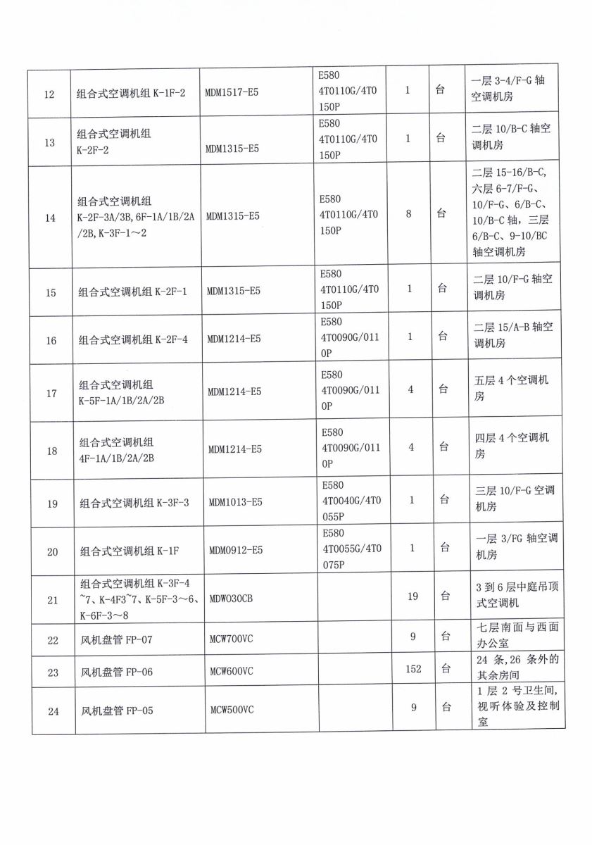 组合式空调机组K-2F-3A/3B,6F-1A/1B/2A/2B,K-3F-1~2